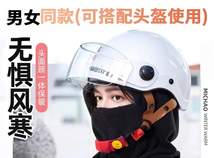 电动车面罩围脖一体帽子头盔内胆帽秋冬季保暖防风骑车神器头套女